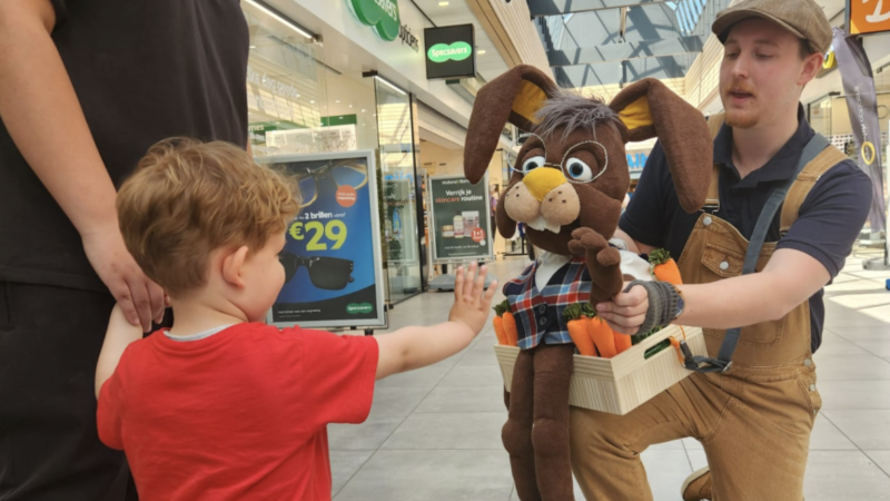 Huppel is een nieuwsgierige handpop die dol is op ontmoetingen en gezellig paasgeklets! Vanuit zijn kistje vol wortels stelt hij vragen over Pasen, bespreekt jullie favoriete paasei smaken en maakt op speelse wijze contact met jong en oud. Een interactieve act waarbij de paashaas misschien wel paaseitjes met zich mee heeft